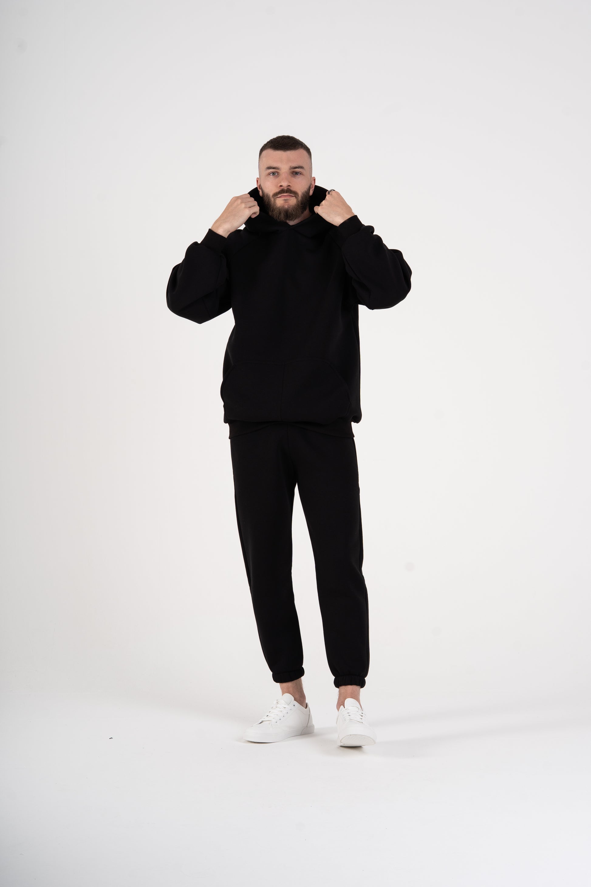 Klasika v černé, která má sílu. Tato mikina je ušitá z hutné počesané teplákoviny nejvyšší gramáže – měkká na dotek, ale pevná a trvanlivá. Zahřeje, podrží tvar a unosíš ji od podzimu do jara, každý den trochu jinak.