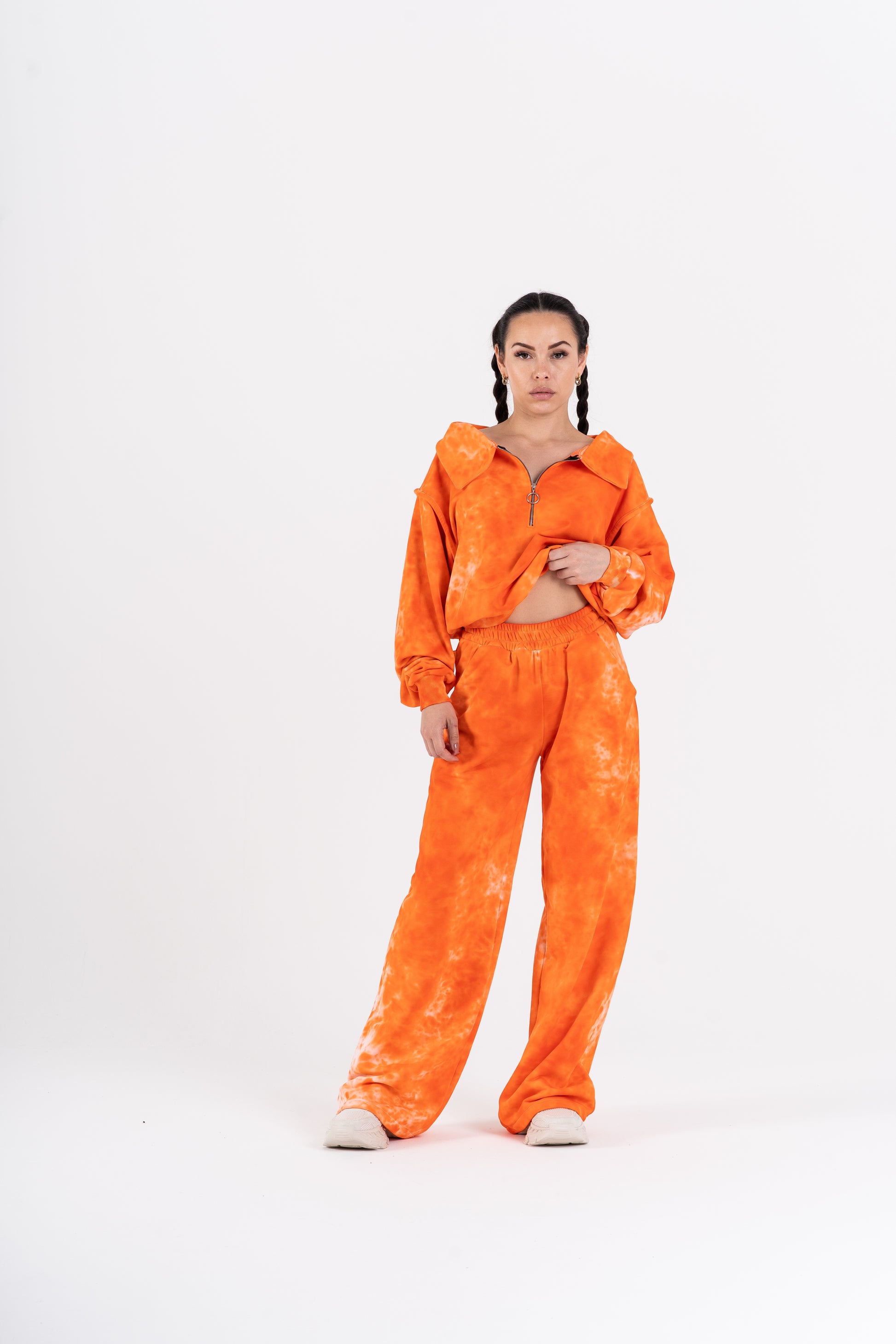 Tahle tepláková souprava má duši sedmdesátek – volnější střih, lehce spadlá ramena, pružné lemy a ikonický límec, který posouvá celý look na úroveň oldschool elegance. Každý kus barvím ručně, takže žádná teplákovka není stejná. Odstíny mají hloubku, patinu, život. V kombinaci s měkkým, těžším úpletem je to komplet, který má styl i pohodlí.