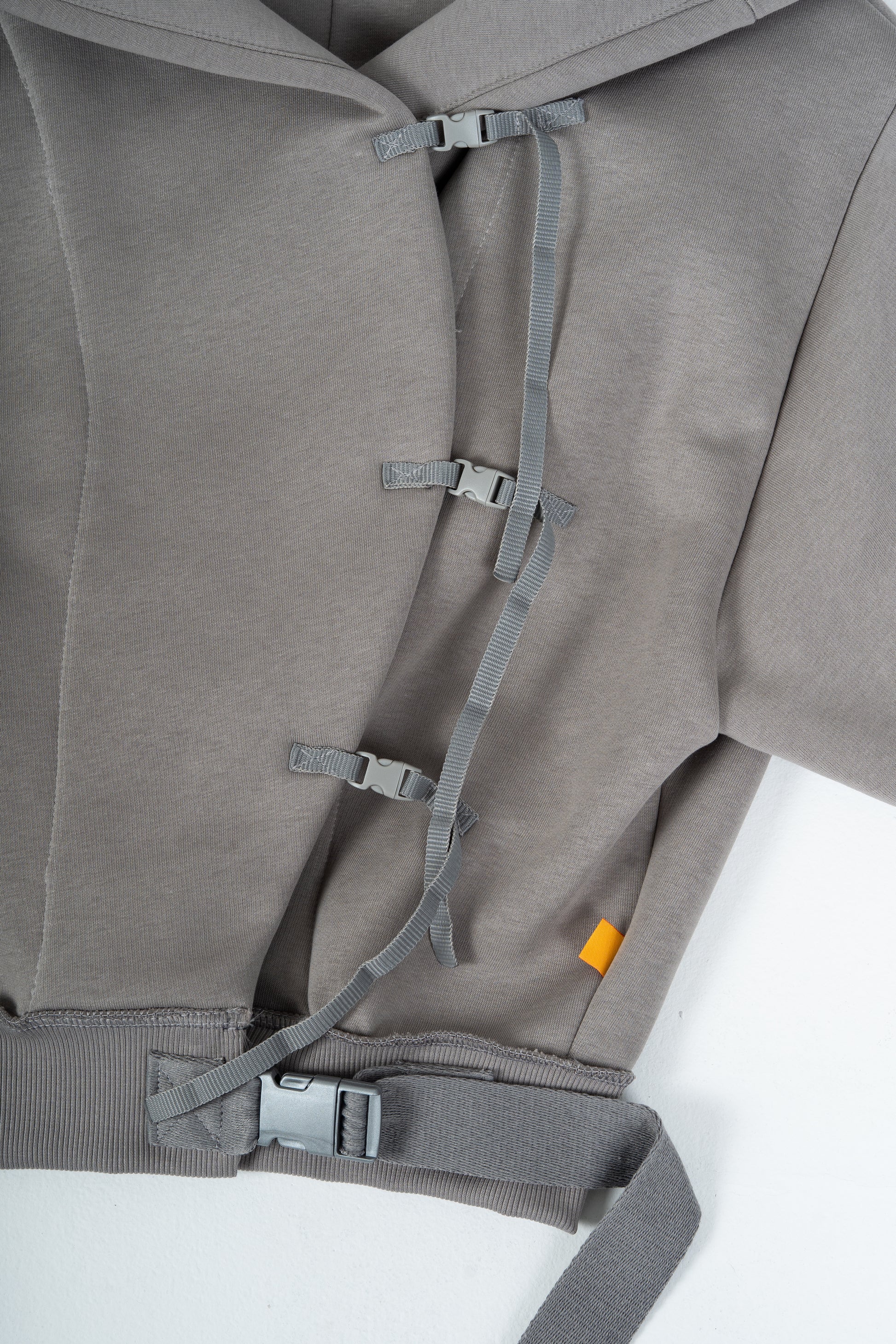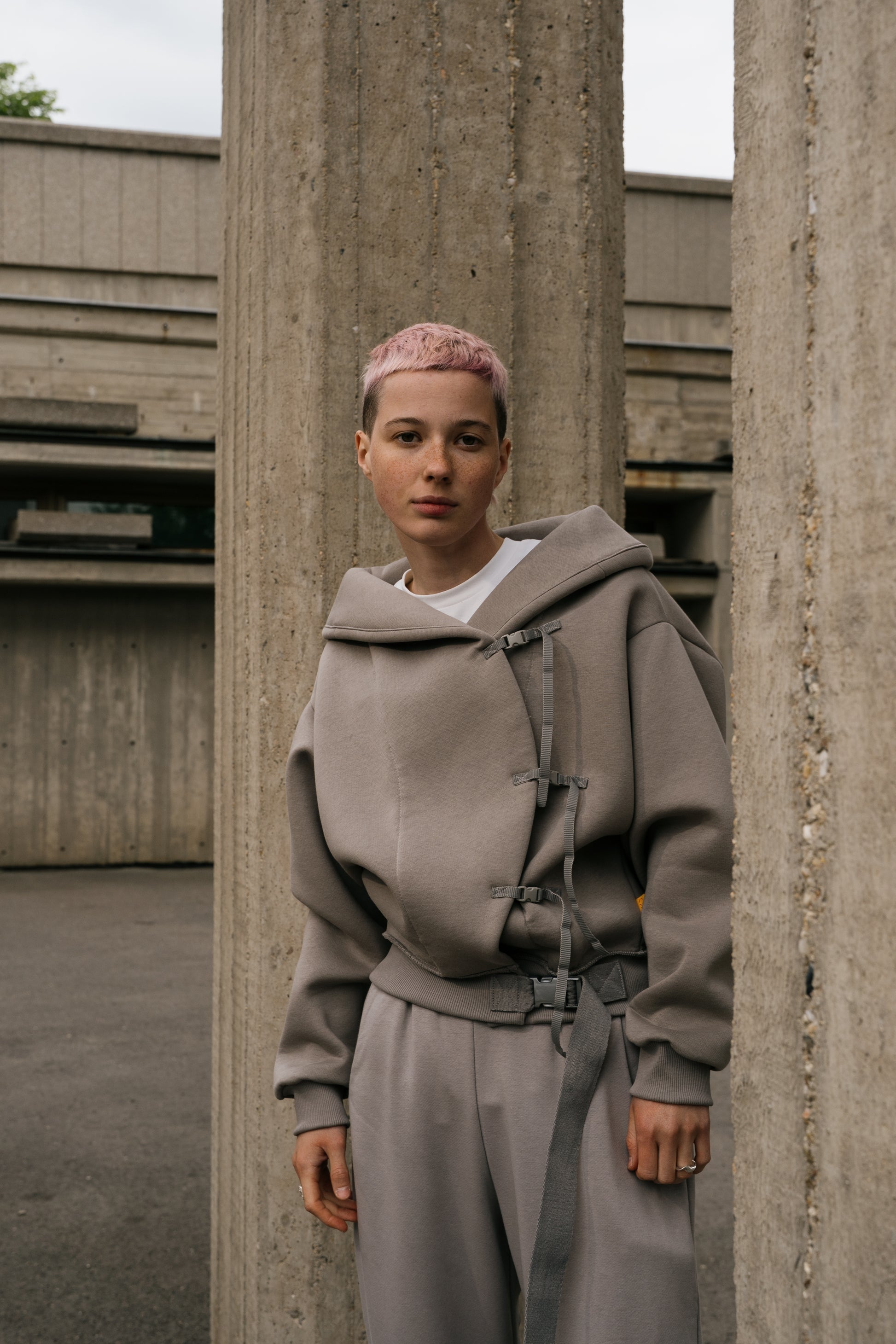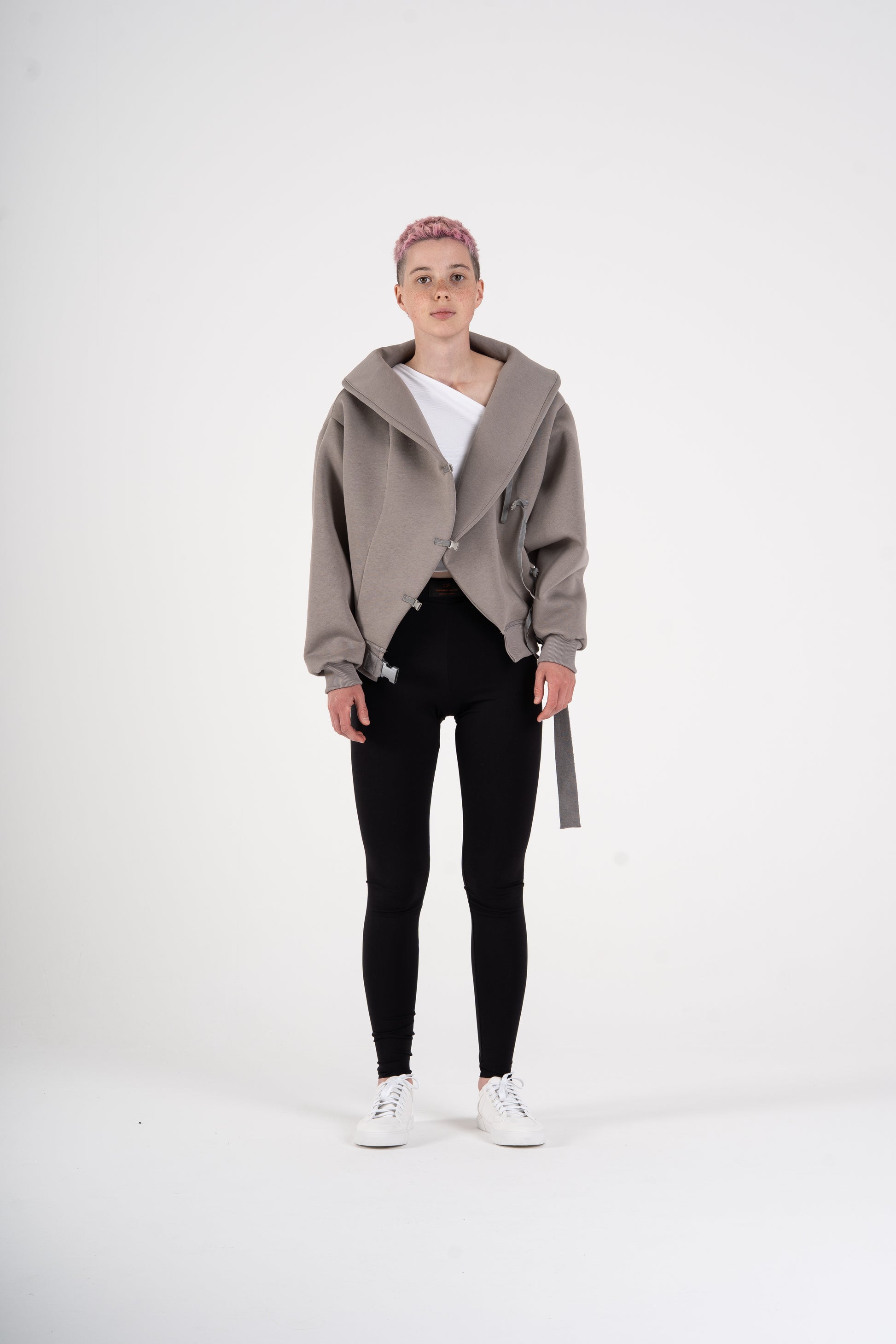 Na první pohled působí suverénně – originální střih, struktura, spony místo zipu. Ale když ji oblékneš, zjistíš, že je to jeden z nejpohodlnějších kousků, co máš. Z rubu jemně počesaná, takže tě doslova obejme – jako mikina, kterou si oblékáš po náročném dni. Přitom ale drží tvar, vypadá zajímavě a má šmrnc.