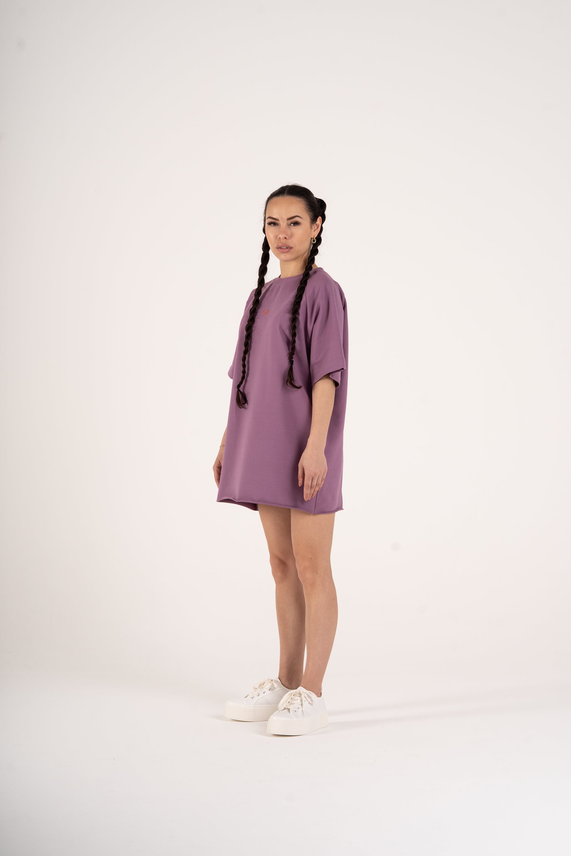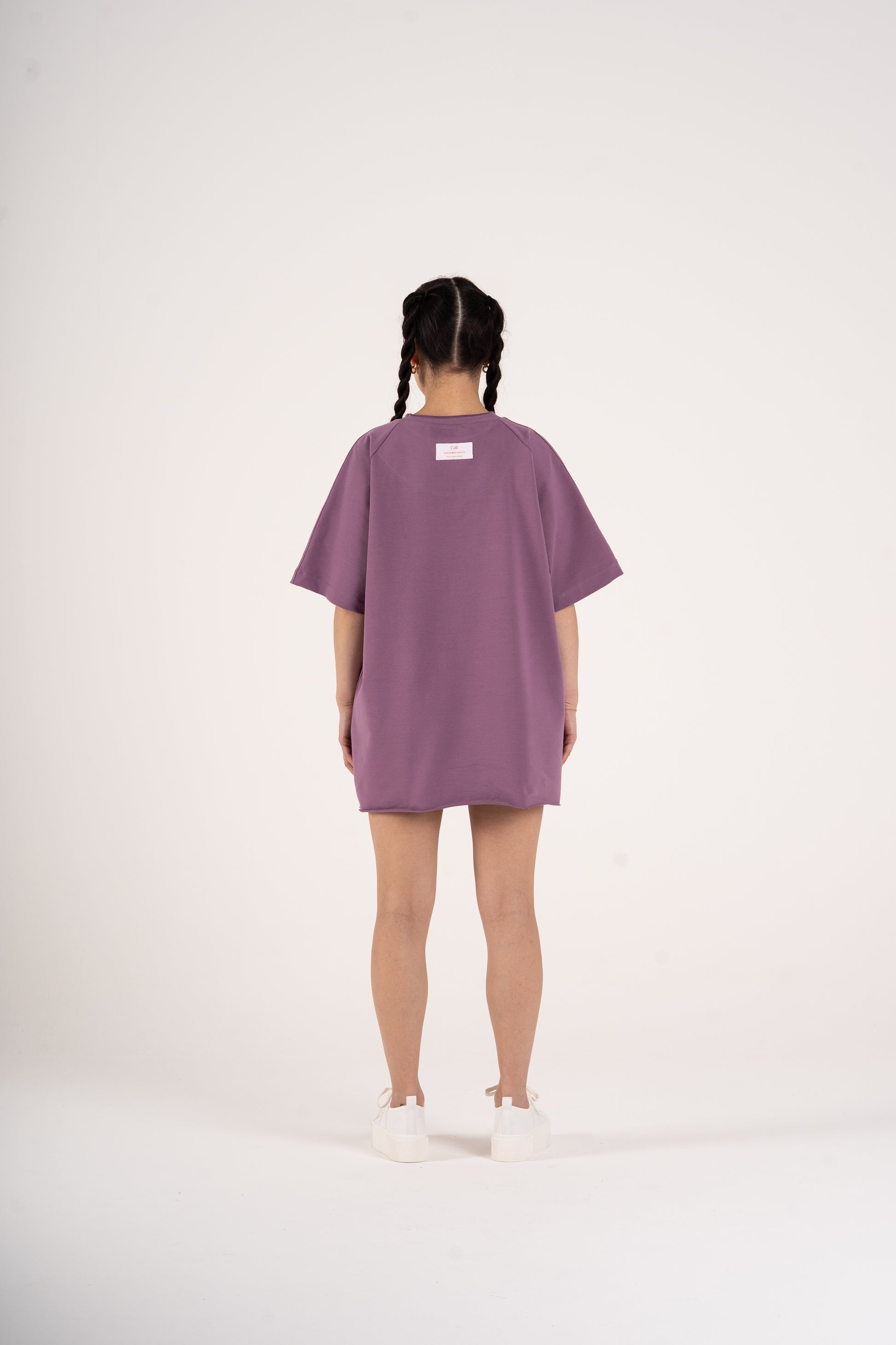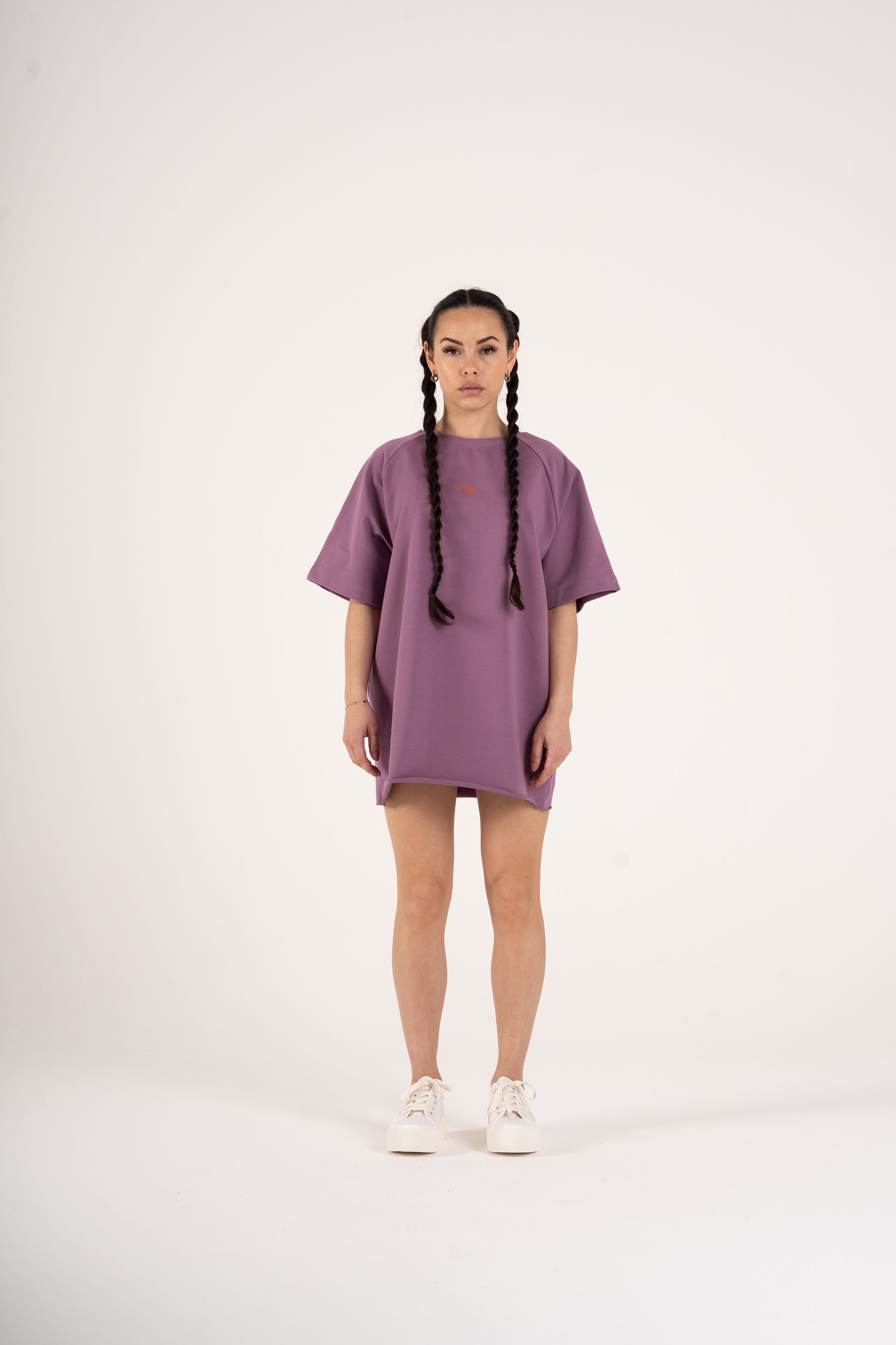Volnější střih, lila odstín a výrazná oranžová výšivka loga – tenhle basic není tichý. Je pohodlný, ale zároveň vizuálně živý. Oversize silueta funguje ke kalhotám i šortkám.